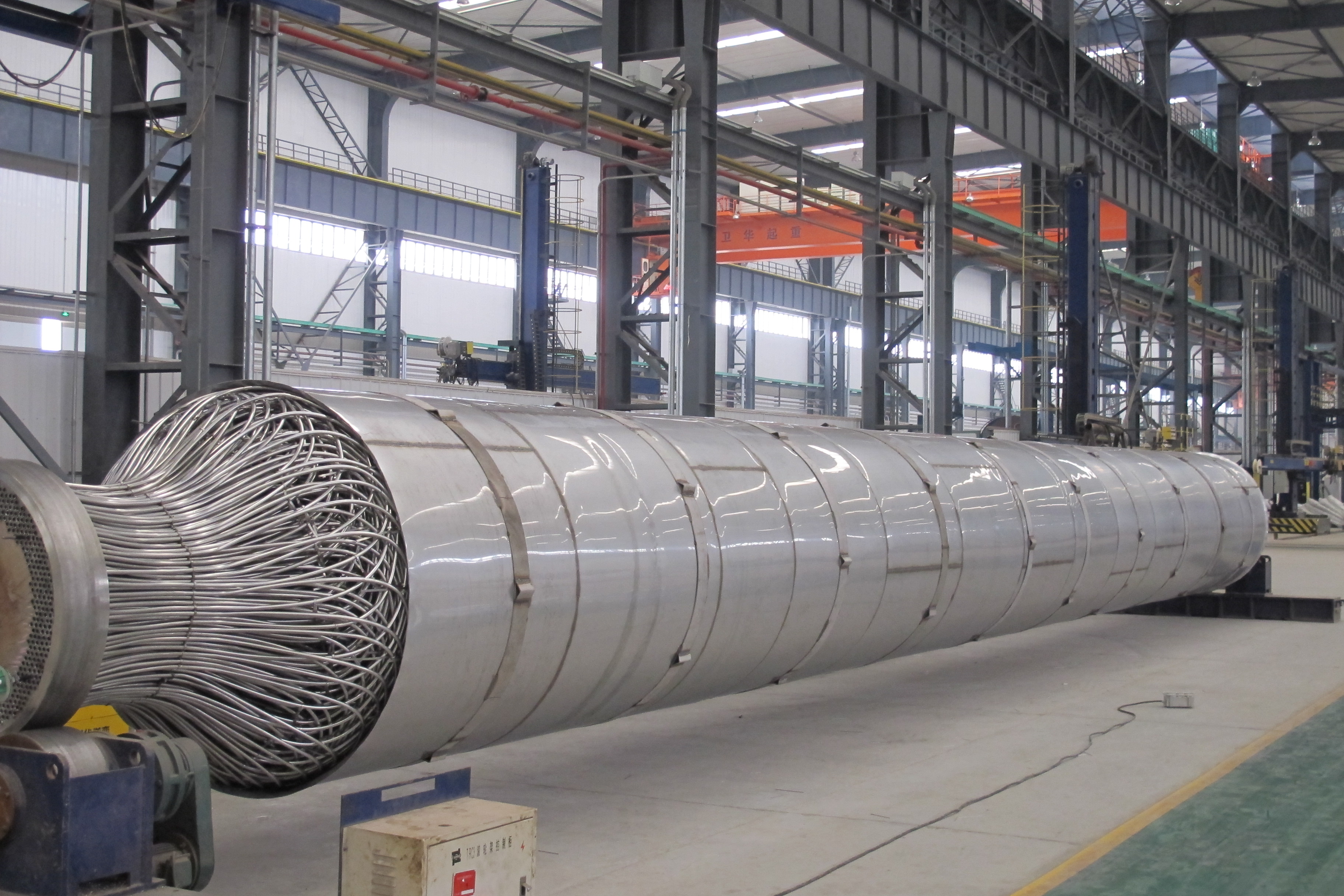 開封空分承接的柳化28000Nm3/h空分設(shè)備和首套國(guó)產(chǎn)化40000Nm3/h大型空分設(shè)備中的高壓氧繞管式換熱器,2004年,我公司承接了中國(guó)石油化工股份有限公司安慶分公司化肥油改煤項(xiàng)目低溫甲醇洗繞管式換熱器,位號(hào)和名稱分別為:E-2203變換氣/凈化氣/CO2產(chǎn)品氣換熱器、E-2207甲醇循環(huán)冷卻器、E-2214再吸收塔甲醇/貧甲醇換熱器。2005年,我公司承接了柳州化工股份有限公司大化肥項(xiàng)目繞管式換熱器,位號(hào)和名稱分別為:A-EA5202原料氣/凈化氣/CO2產(chǎn)品氣換熱器。應(yīng)用于50萬噸甲醇項(xiàng)目的繞管式換熱器的設(shè)計(jì)及制造,2005年,我公司承接了兗礦國(guó)宏化工有限公司兗礦集團(tuán)高硫煤綜合利用年產(chǎn)50萬噸甲醇項(xiàng)目低溫甲醇洗繞管式換熱器,位號(hào)和名稱分別為:E-2203變換氣/凈化氣/循環(huán)氣/尾氣 換熱器。